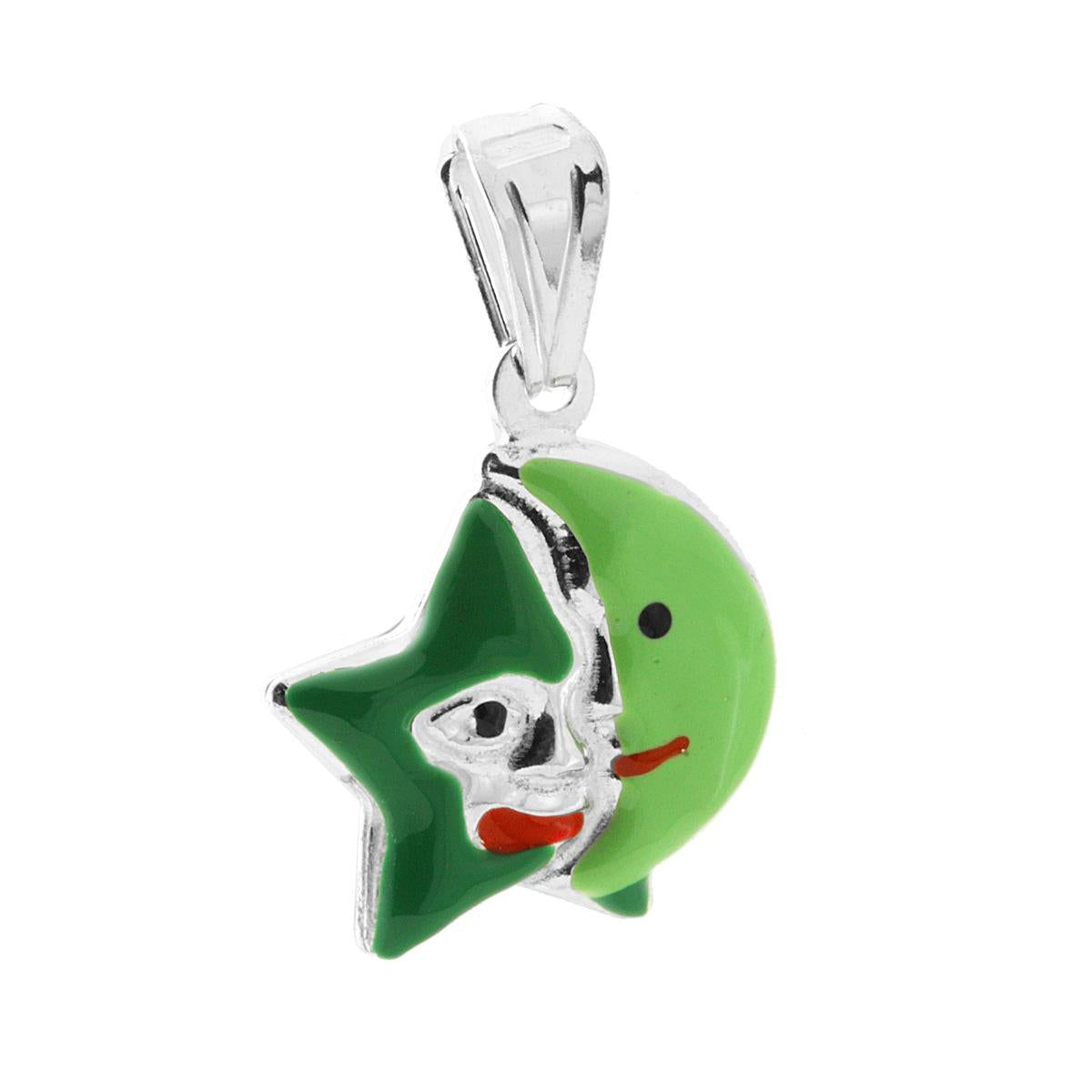 Ciondolo per Bimbo e Bimba con Stella e Luna smaltato Verde in ARGENTO 925
