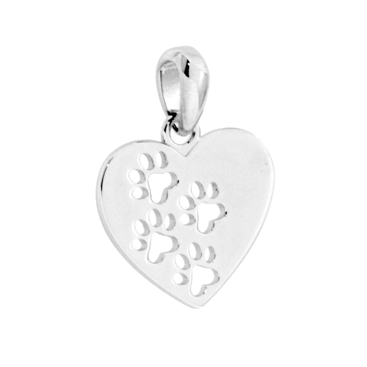 Ciondolo piastrina a forma di cuore con Impronte Zampa Cane traforate, finitura liscia e lucida.