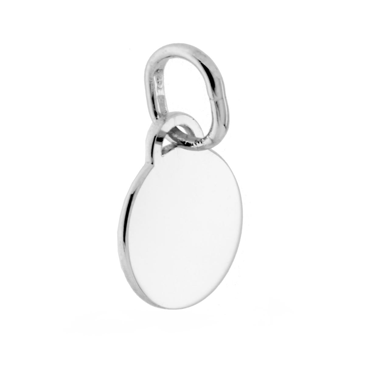 Ciondolo Piastrina a forma tonda con lavorazione liscia e lucida.