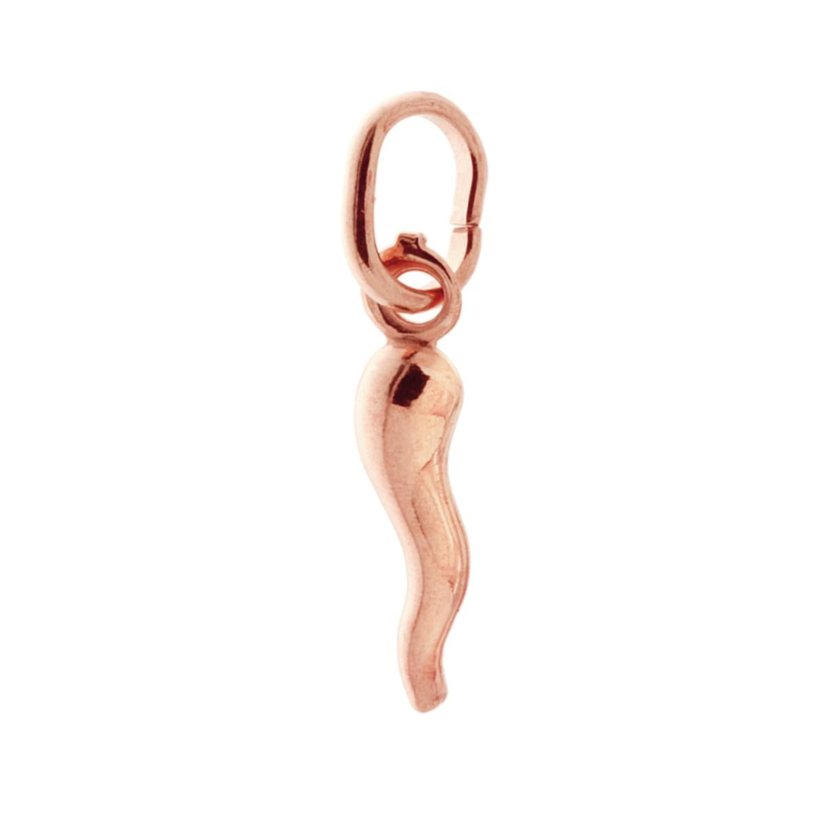 Ciondolo a forma di Cornetto portafortuna in Argento Galvanica Rosè con lavorazione liscia e lucida.