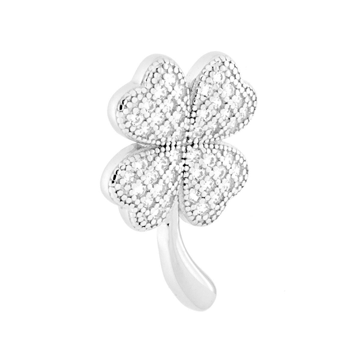 Ciondolo Quadrifoglio con Zirconi Bianchi in ARGENTO 925 Galvanica Rodio