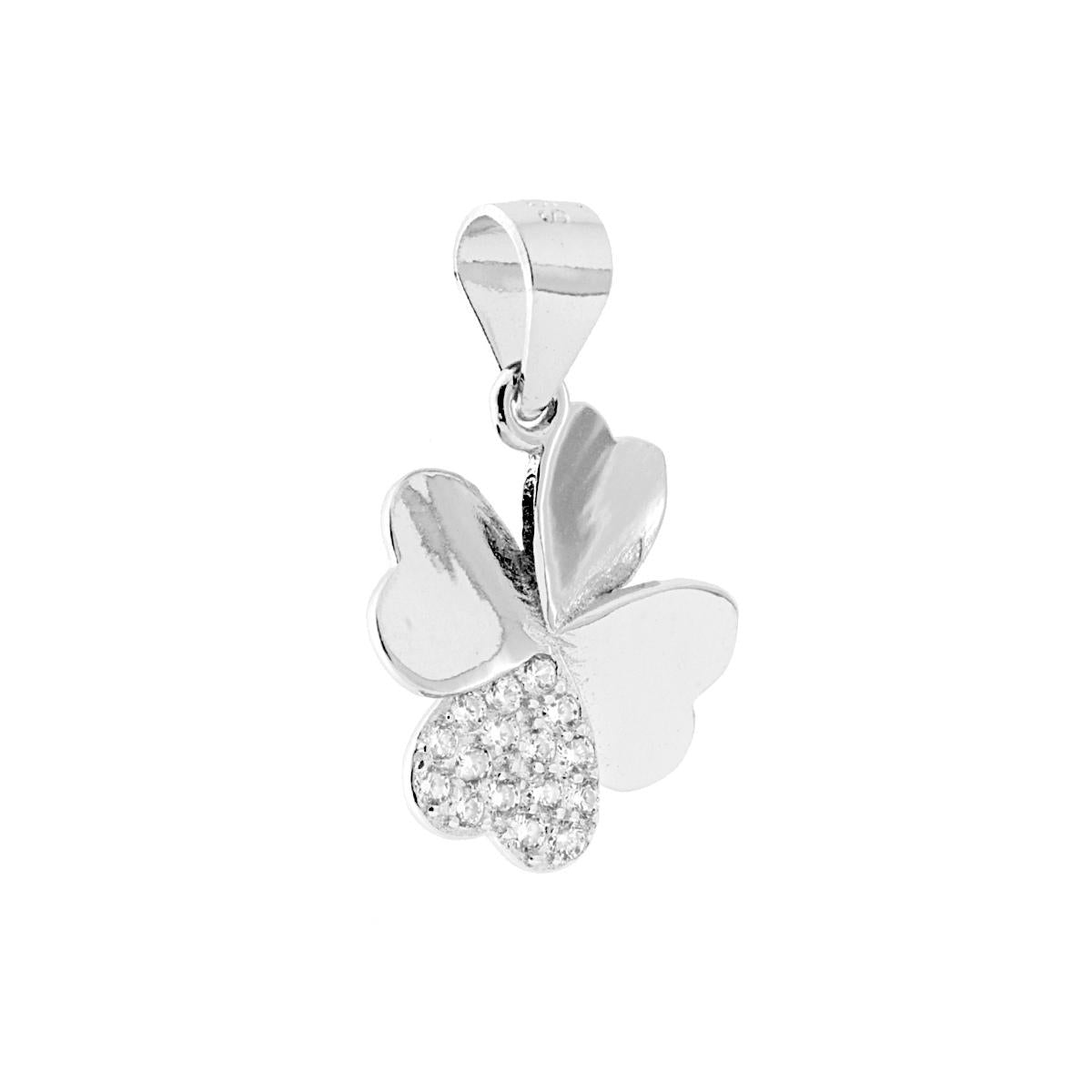Ciondolo a forma di Quadrifoglio con Cuori e con Zirconi Bianchi incastonati.