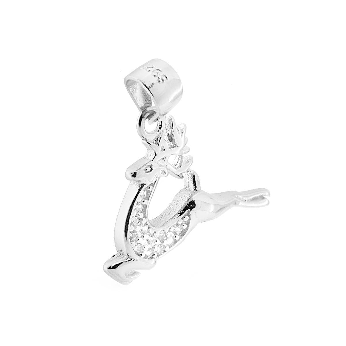 Ciondolo Renna con Zirconi Bianchi in ARGENTO 925 Galvanica Rodio