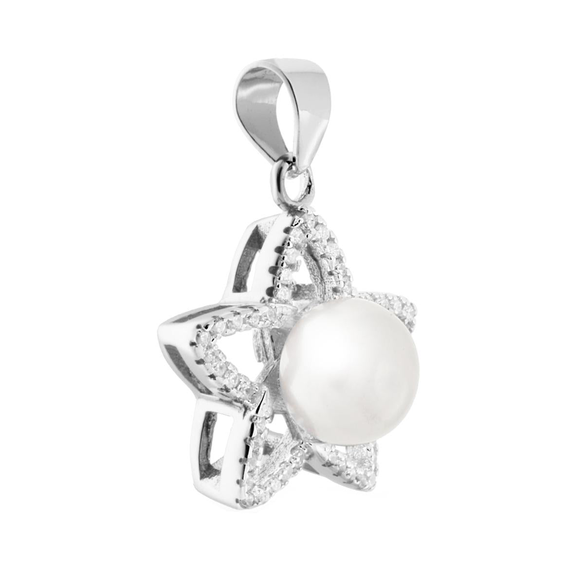 Ciondolo Stella con Perla di fiume e Zirconi Bianchi in ARGENTO 925 Galvanica Rodio