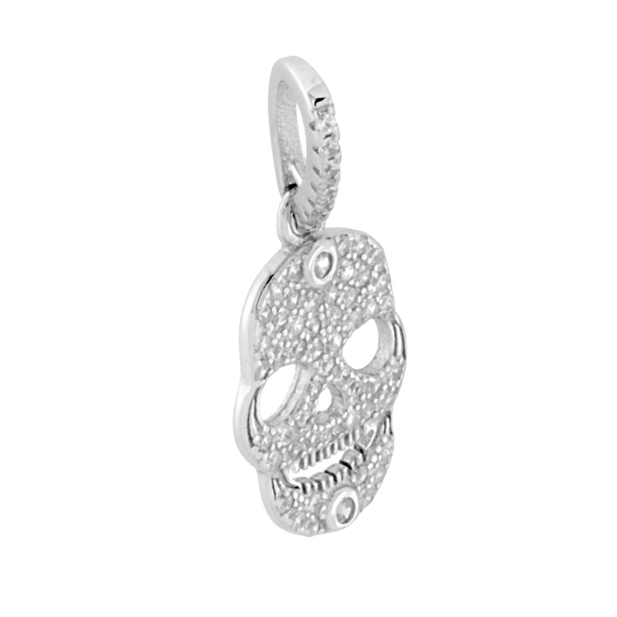 Ciondolo Teschio con Zirconi Bianchi in ARGENTO 925 Galvanica Rodio