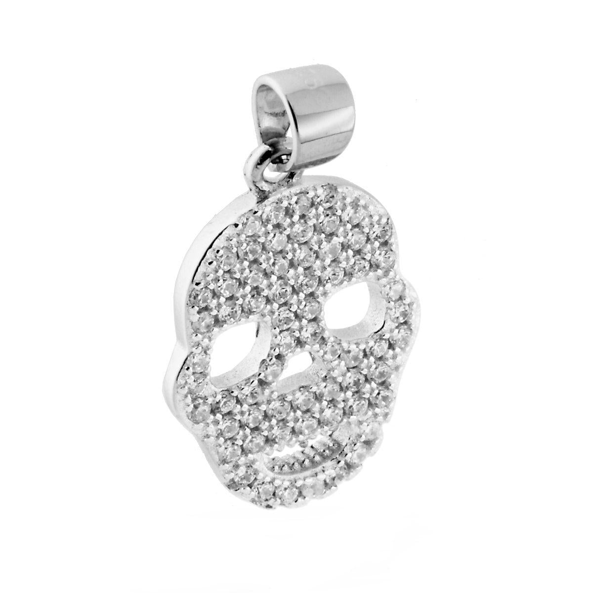 Ciondolo Teschio con Zirconi in ARGENTO 925 Galvanica Rodio