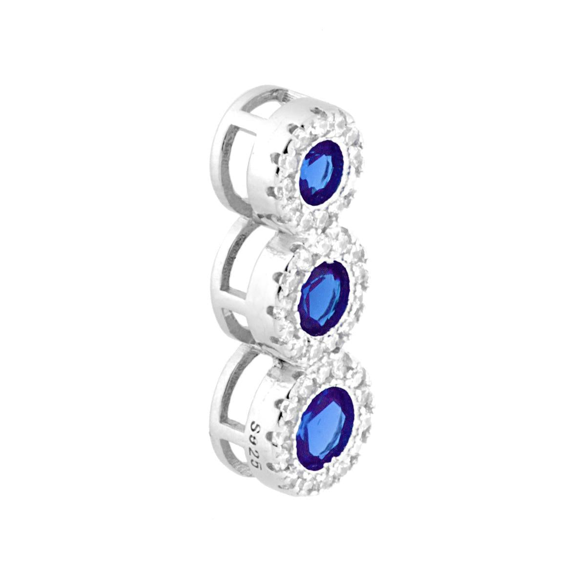Ciondolo trilogy con passante per catena composto da zirconi tondi Blu Zaffiro con zirconi bianchi incastonati intorno.