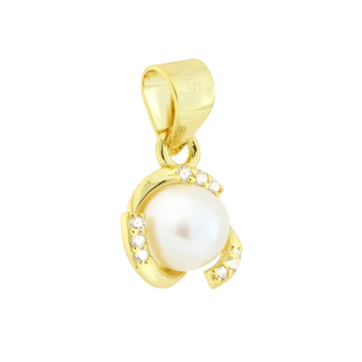 Ciondolo Vortice con Cubic Zirconia Bianchi e Perla Naturale in ARGENTO 925 Galvanica Oro
