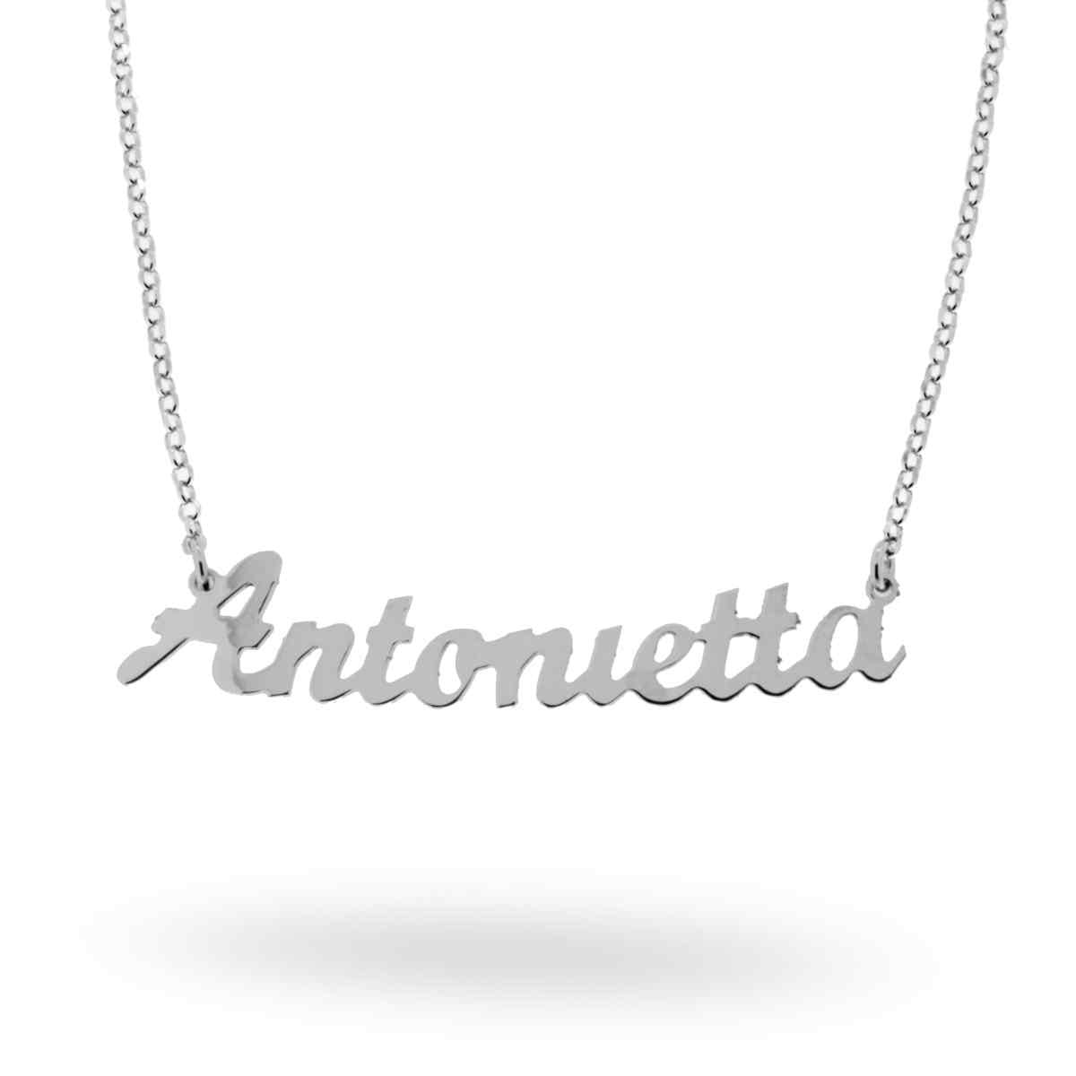 Collana nome Antonietta in corsivo in ARGENTO 925 Galvanica Rodio