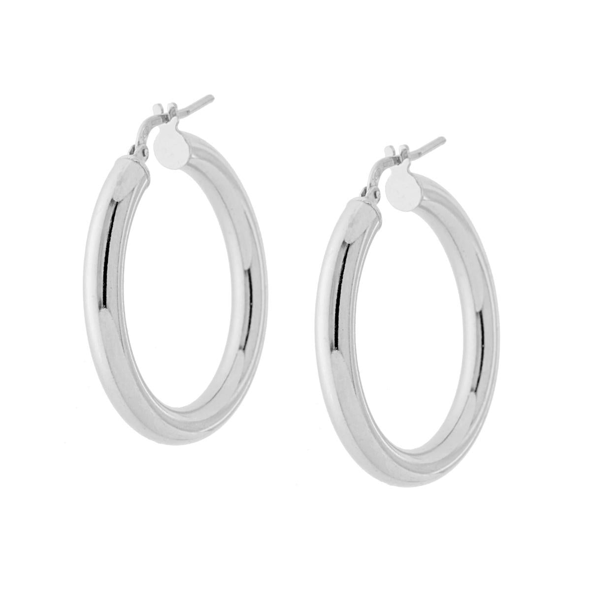 Orecchini a Cerchio mm 32 con Canna tubolare liscia mm 4 in ARGENTO 925 Galvanica Rodio