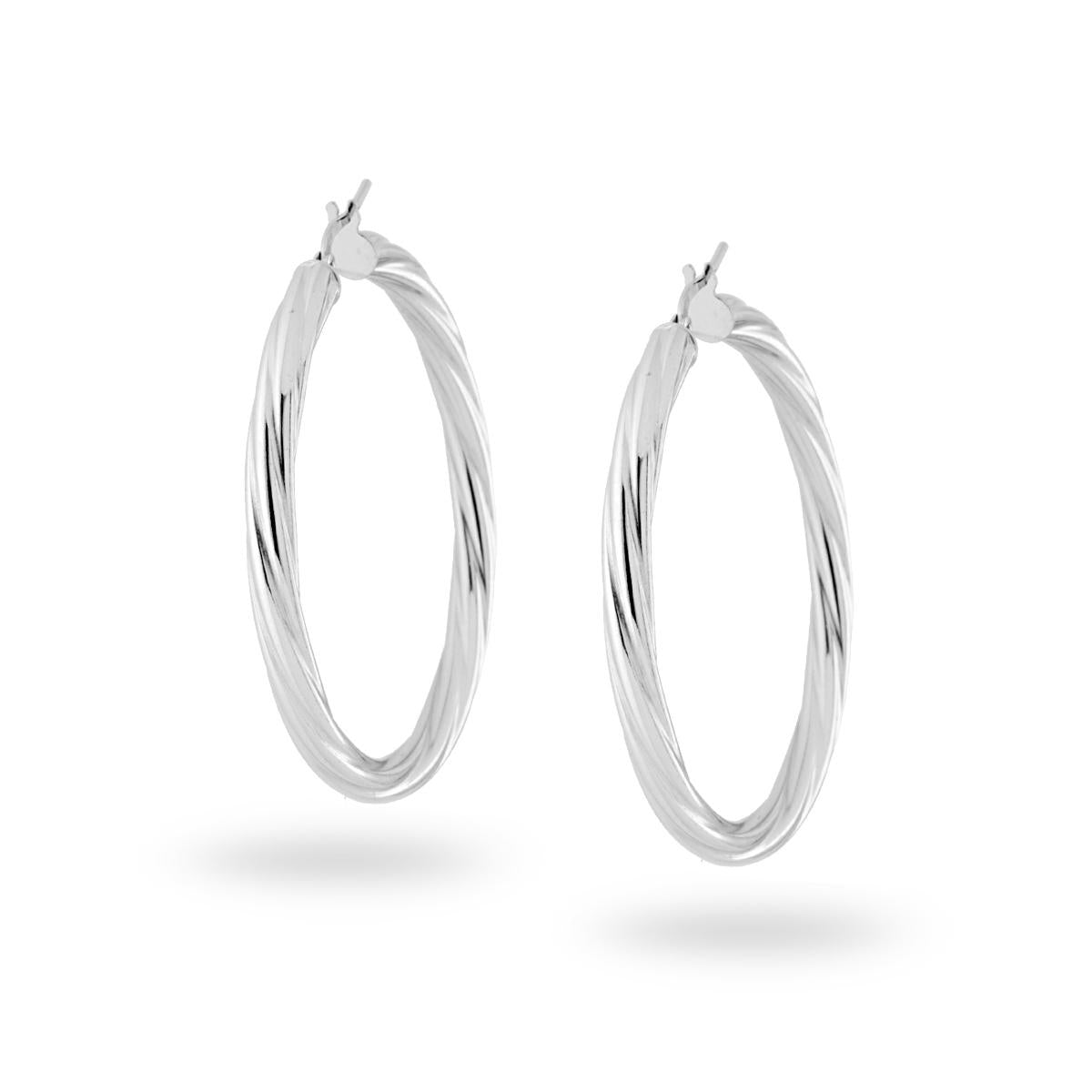 Orecchini a Cerchio mm 48 con Canna Ritorta mm 4 in ARGENTO 925 Galvanica Rodio
