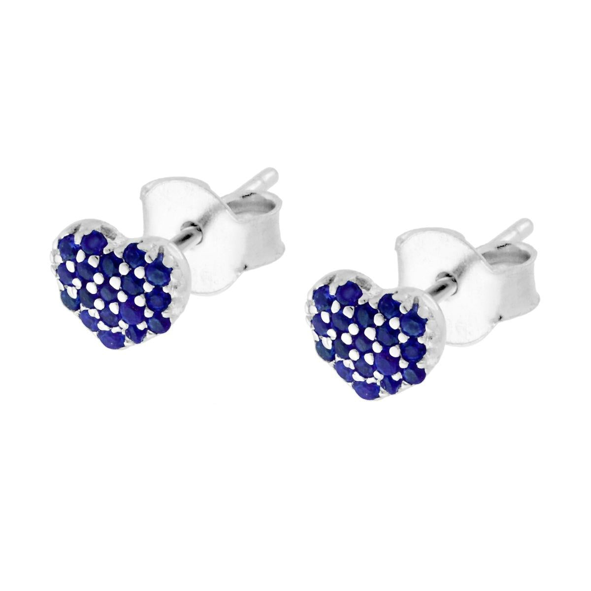 Orecchini a forma di cuore con cubic zirconia colore Blu Zaffiro incastonati.