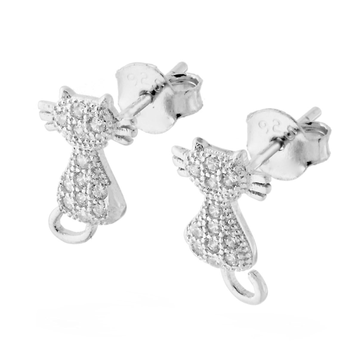 Orecchini a forma di Gatto con Zirconi Bianchi in ARGENTO 925 Galvanica Rodio