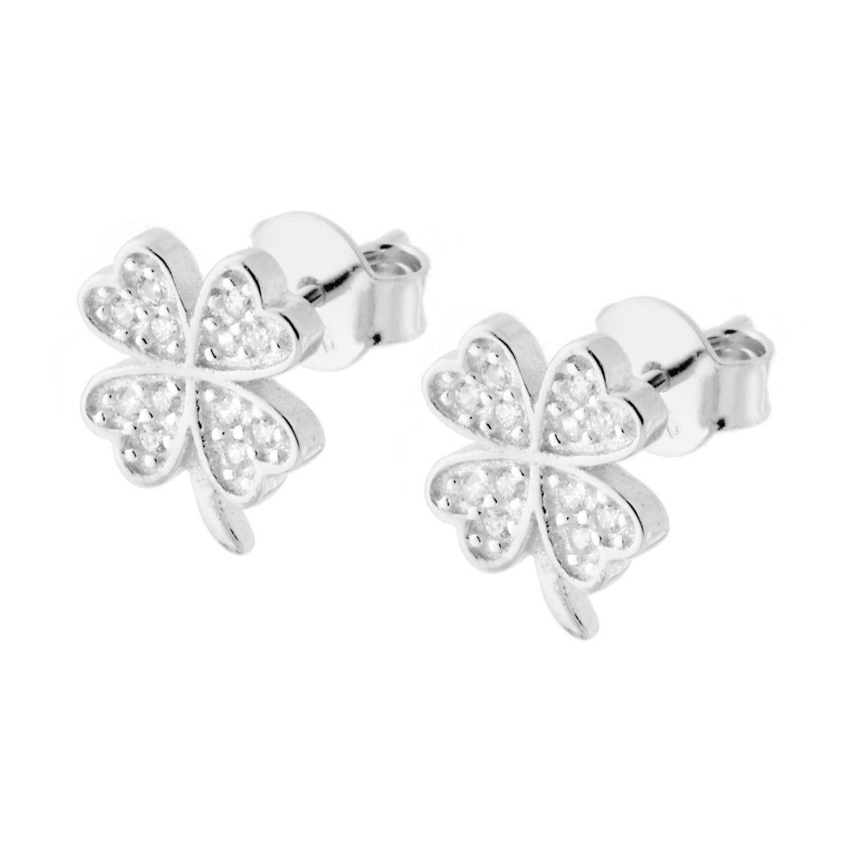 Orecchini a forma di Quadrifoglio con Zirconi Bianchi in ARGENTO 925 Galvanica Rodio