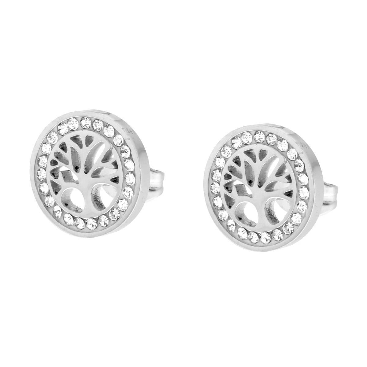 Orecchini Albero della Vita con Crystal Bianchi in ACCIAIO