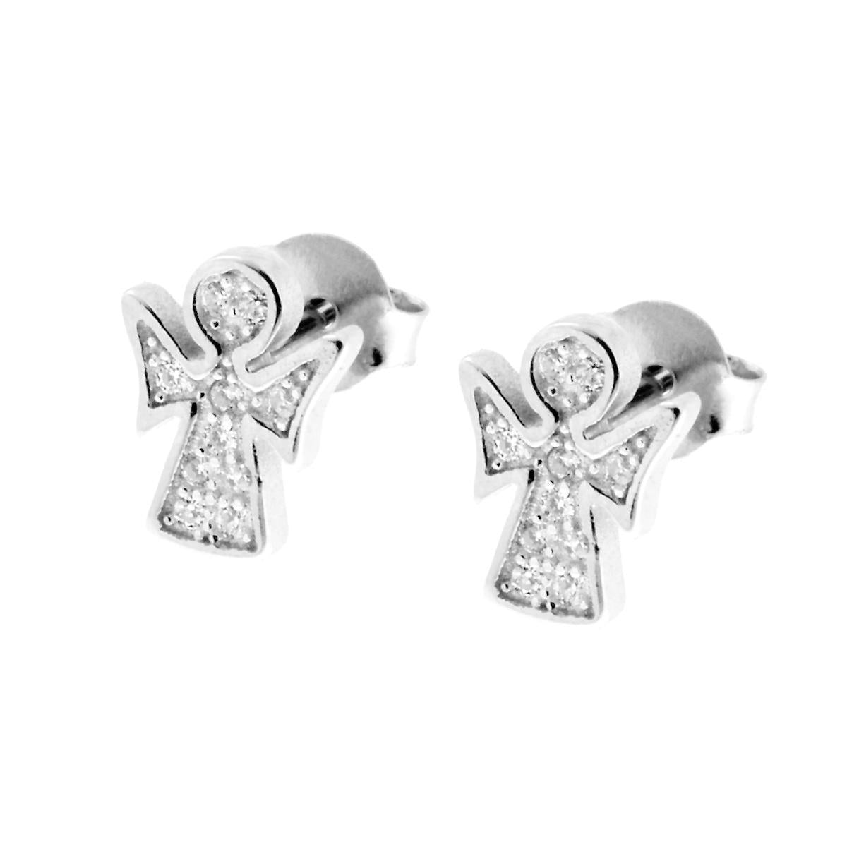 Orecchini Angelo con Zirconi Bianchi in ARGENTO 925 Galvanica Rodio