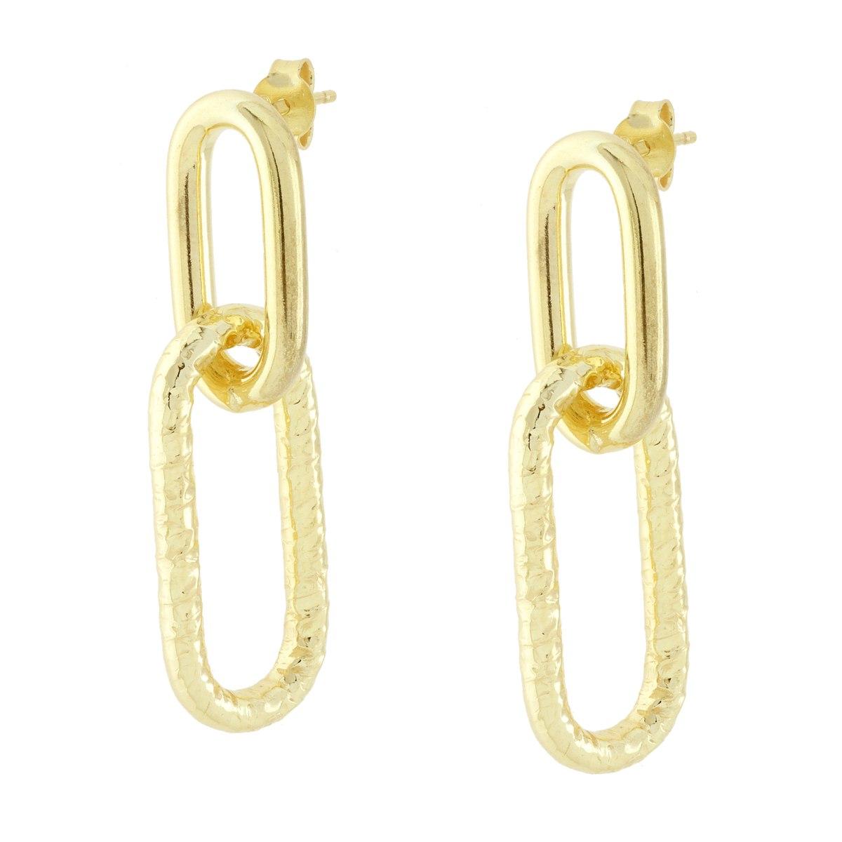 Orecchini Cerchi Ovali pendenti e Martellati in ARGENTO 925 Galvanica Oro