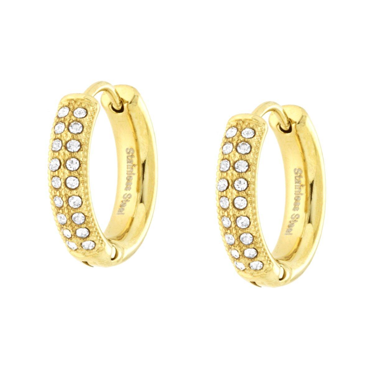 Orecchini Cerchio 15 mm con Crystal Bianchi in ACCIAIO colore Oro
