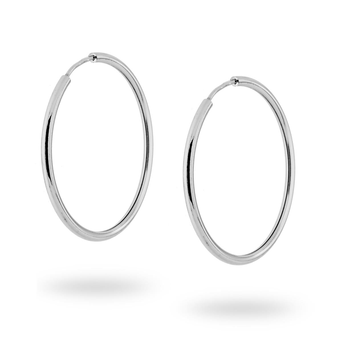 Orecchini Cerchio canna liscia chiusura a scomparsa mm 1,7 diametro mm 30 in ARGENTO 925 Galvanica Rodio