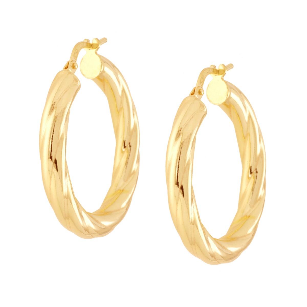 Orecchini cerchio con canna ritorta con finitura liscia e lucida.