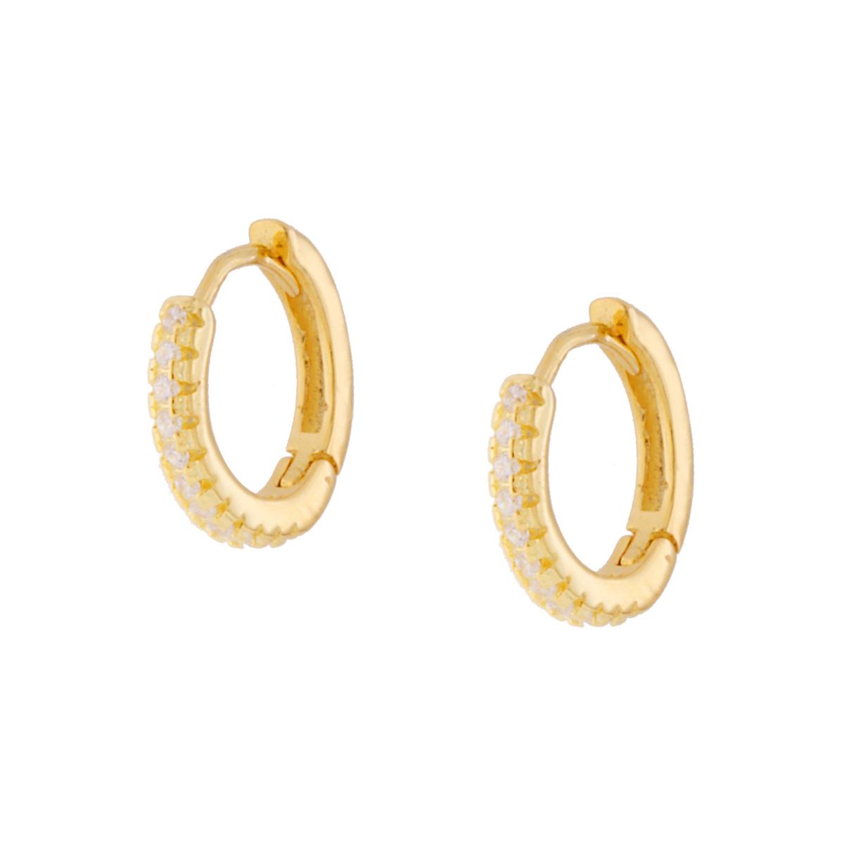 Orecchini Cerchio mm 10 con Zirconi Bianchi ARGENTO 925 Galvanica Oro