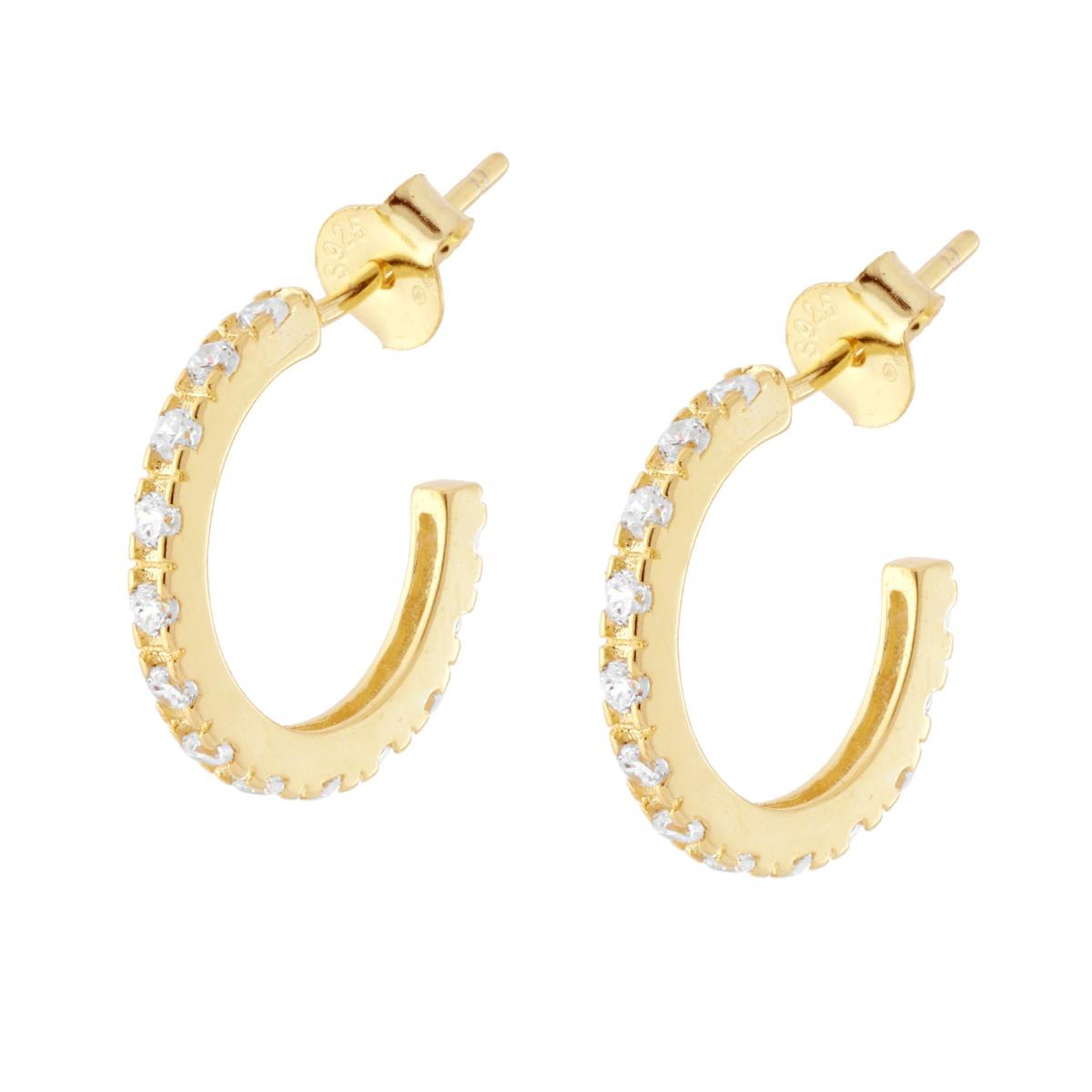 Orecchini Cerchio mm 15 con Zirconi Bianchi in ARGENTO 925 Galvanica Oro