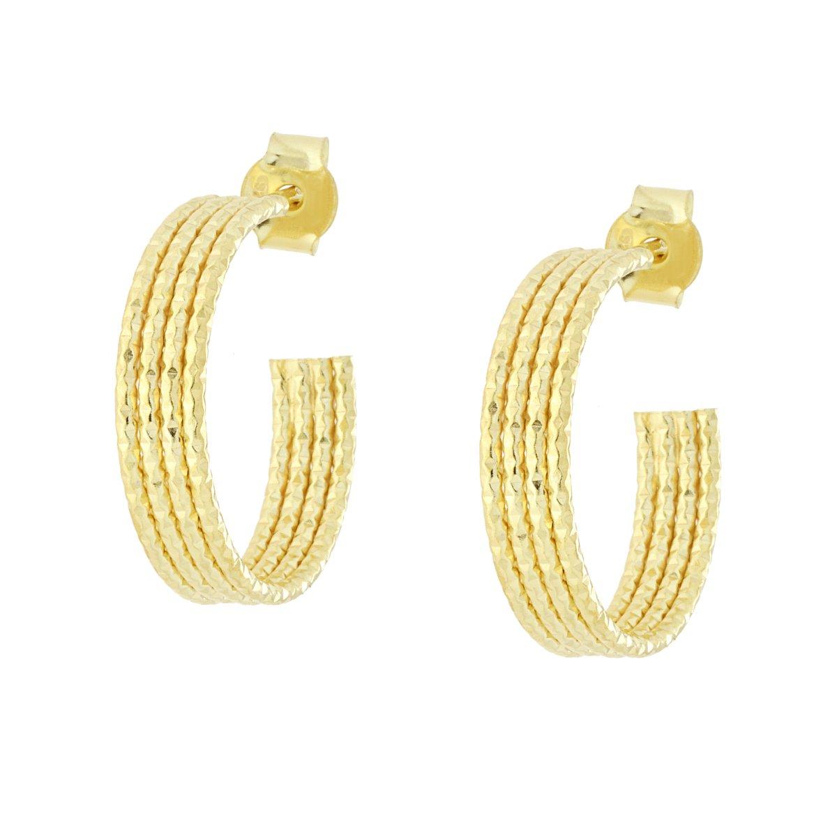 Orecchini Cerchio Multicanna Diamantato 22 mm in ARGENTO 925 Galvanica Oro