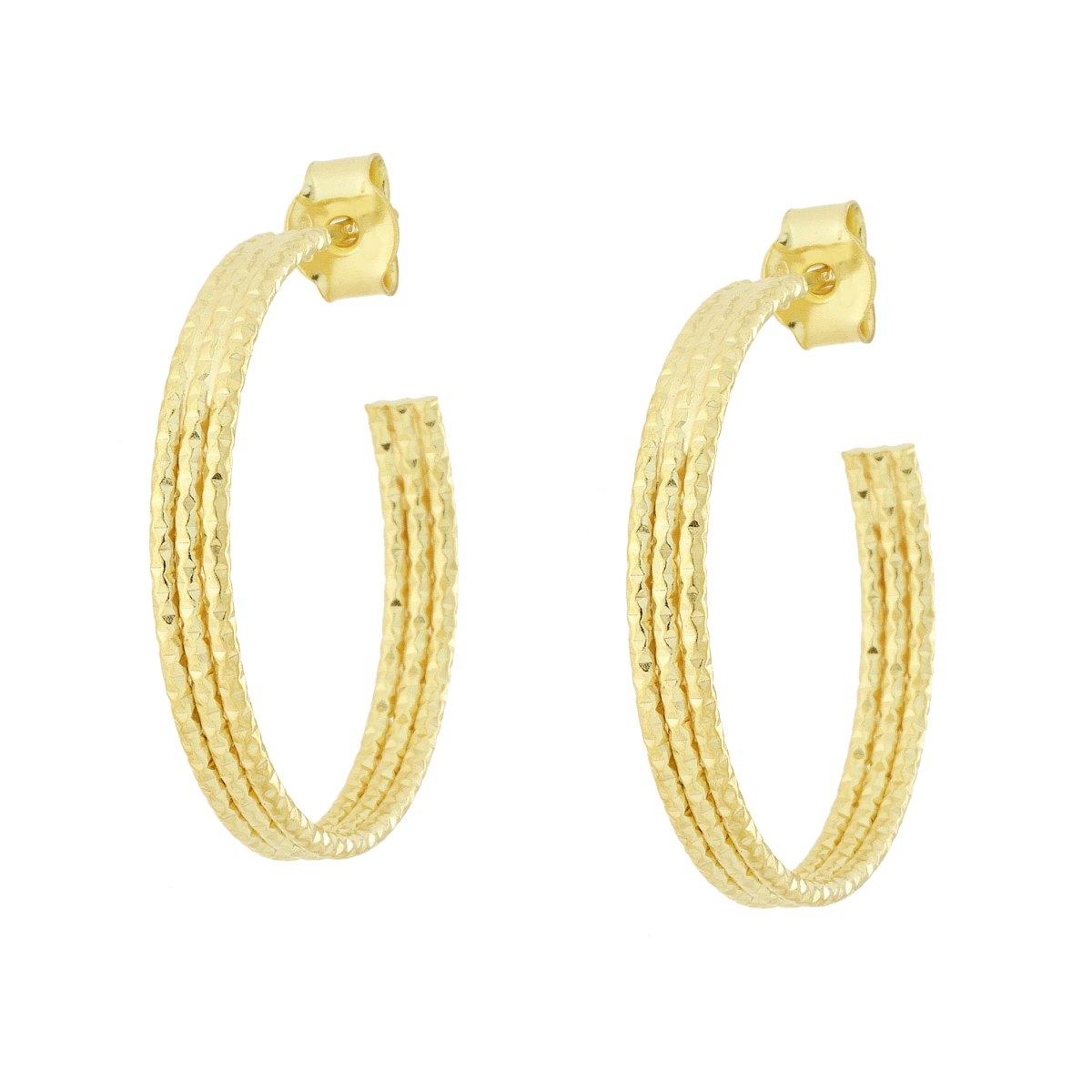 Orecchini Cerchio Multicanna Diamantato 28 mm in ARGENTO 925 Galvanica Oro