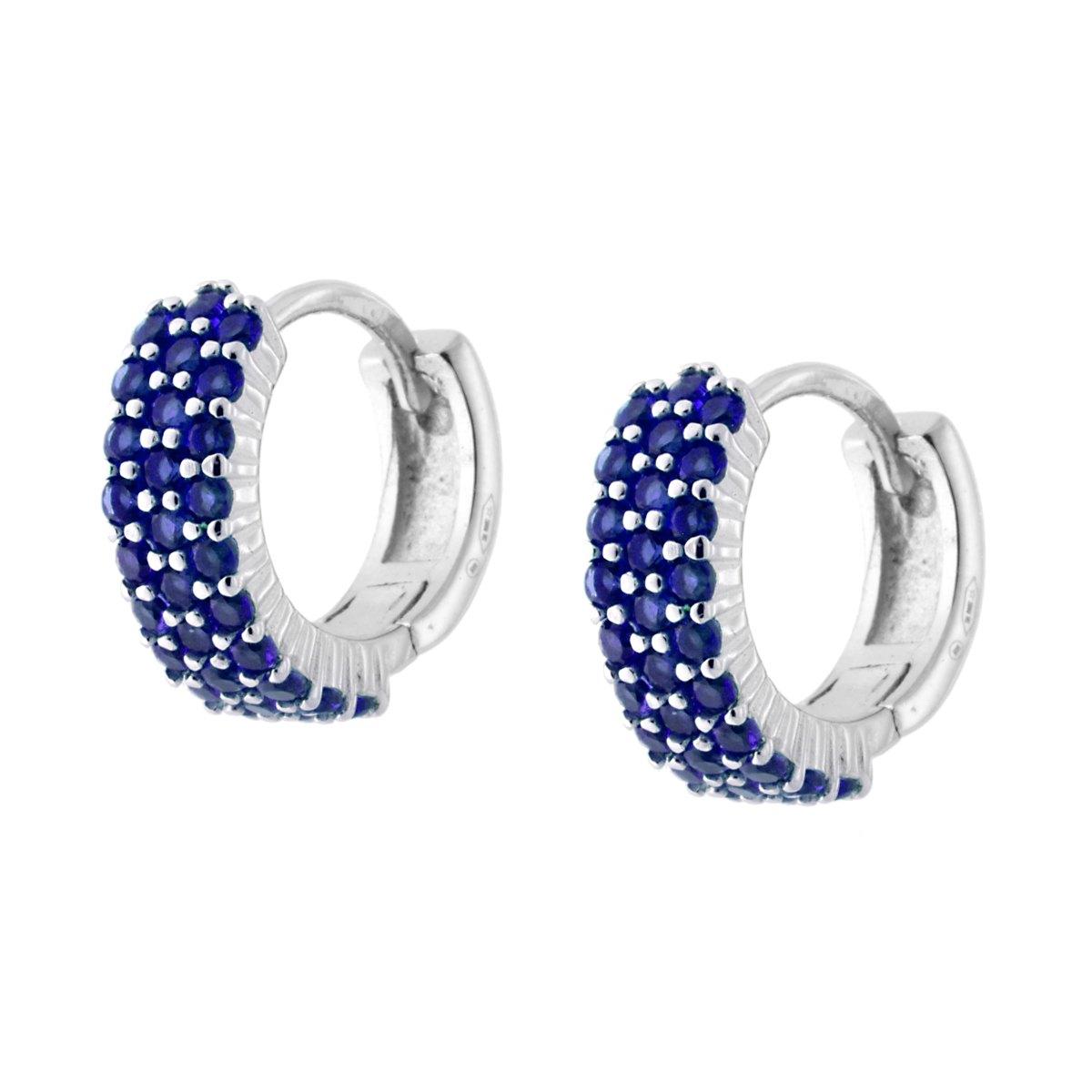 Orecchini Cerchio tre fili con Zirconi Blu Zaffiro in ARGENTO 925 Galvanica Rodio