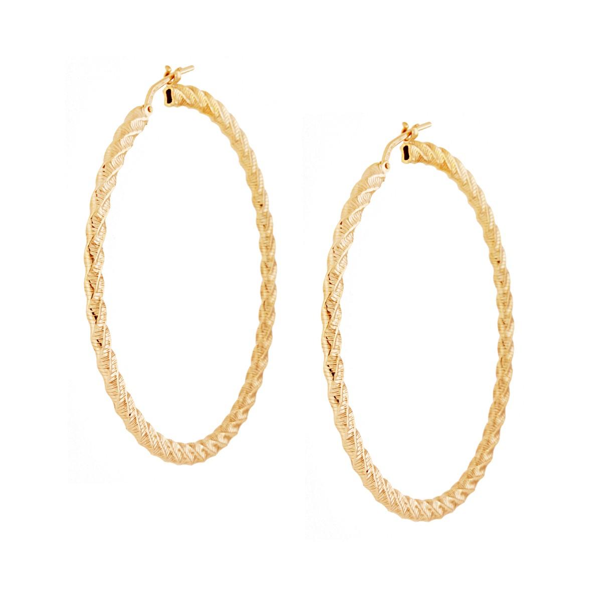 Orecchini Cerchio piatto con lavorazione a treccia ritorta e diamantata.