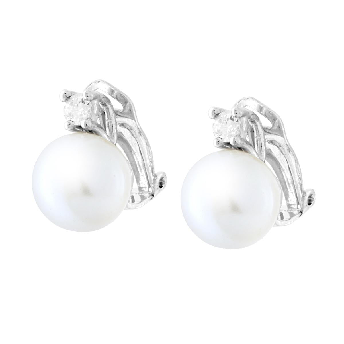 Orecchini Clip con Perla mm 10 e Punto Luce Cubic Zirconia Bianco in ARGENTO 925 Galvanica Rodio