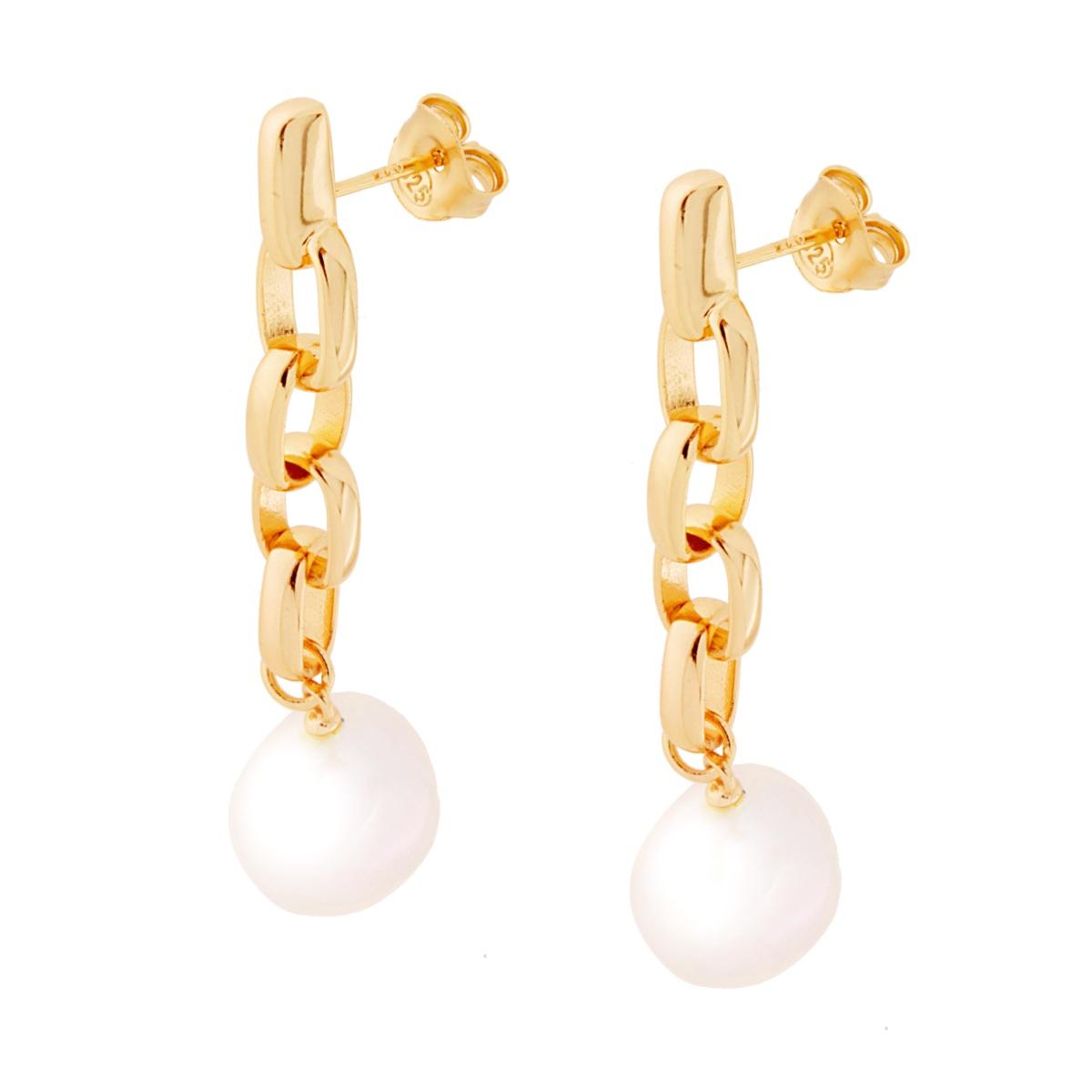 Orecchini con Catena e Perla Scaramazza pendente in ARGENTO 925 Galvanica Oro