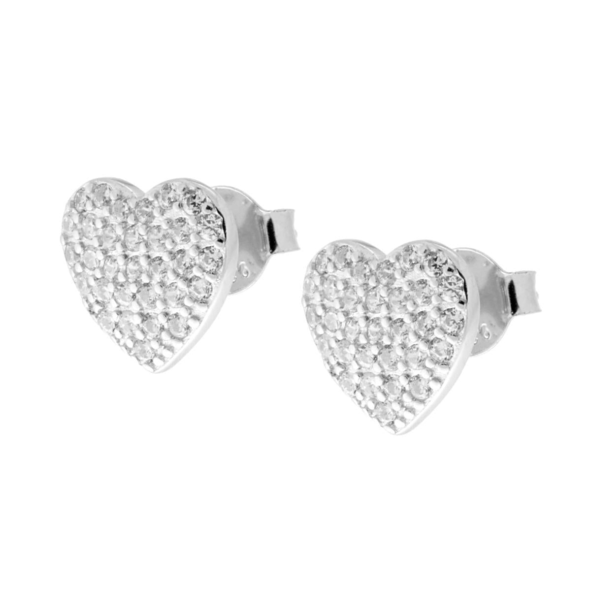 Orecchini con Cuore e Zirconi Bianchi in ARGENTO 925 Galvanica Rodio