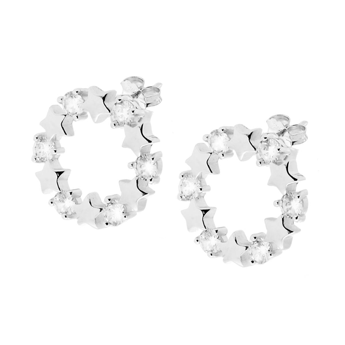 Orecchini con Stelle e Zirconi a Cerchio in ARGENTO 925 Galvanica Rodio