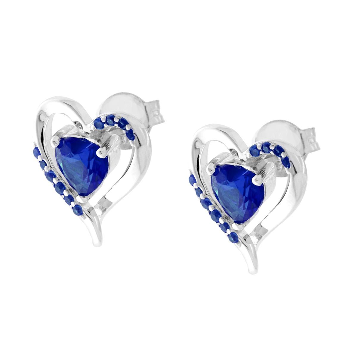 Orecchini Cuore Blu Zaffiro Cubic Zirconia in ARGENTO 925 Galvanica Rodio