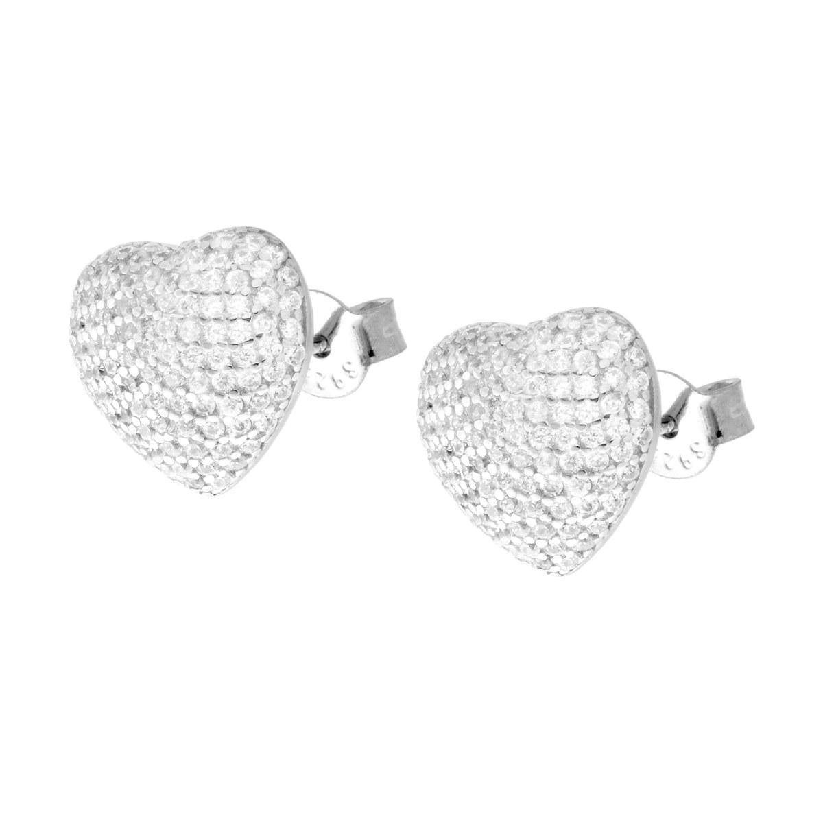Orecchini Cuore Bombato con Zirconi Bianchi in ARGENTO 925 Galvanica Rodio