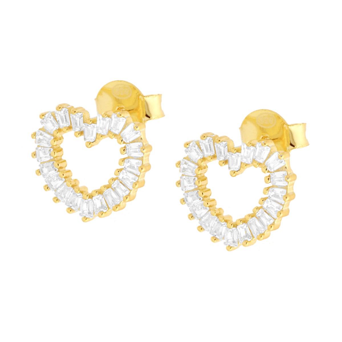 Orecchini Cuore con Baguette Cubic Zirconia Bianchi in ARGENTO 925 Galvanica Oro