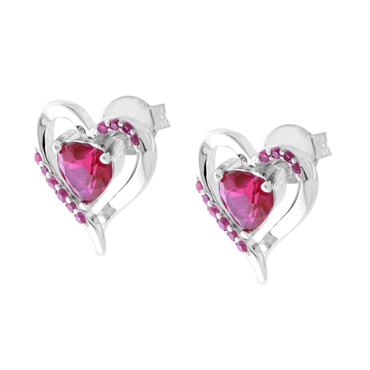 Orecchini Cuore Rosso Rubino Cubic Zirconia in ARGENTO 925 Galvanica Rodio