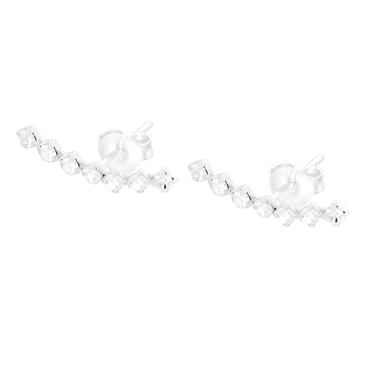 Orecchini ear cuff con sette Cubic Zirconia bianchi incastonati su barretta curva.