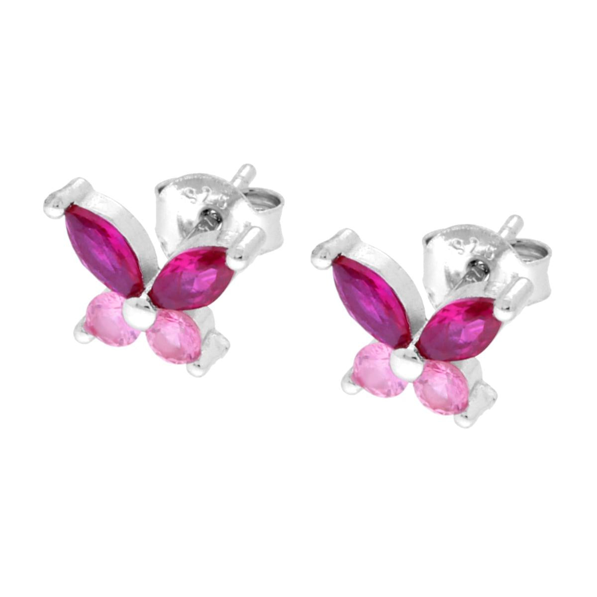 Orecchini Farfalla con Cubic Zirconia Marquise Rosso Rubino e Rosa in ARGENTO 925 Galvanica Rodio
