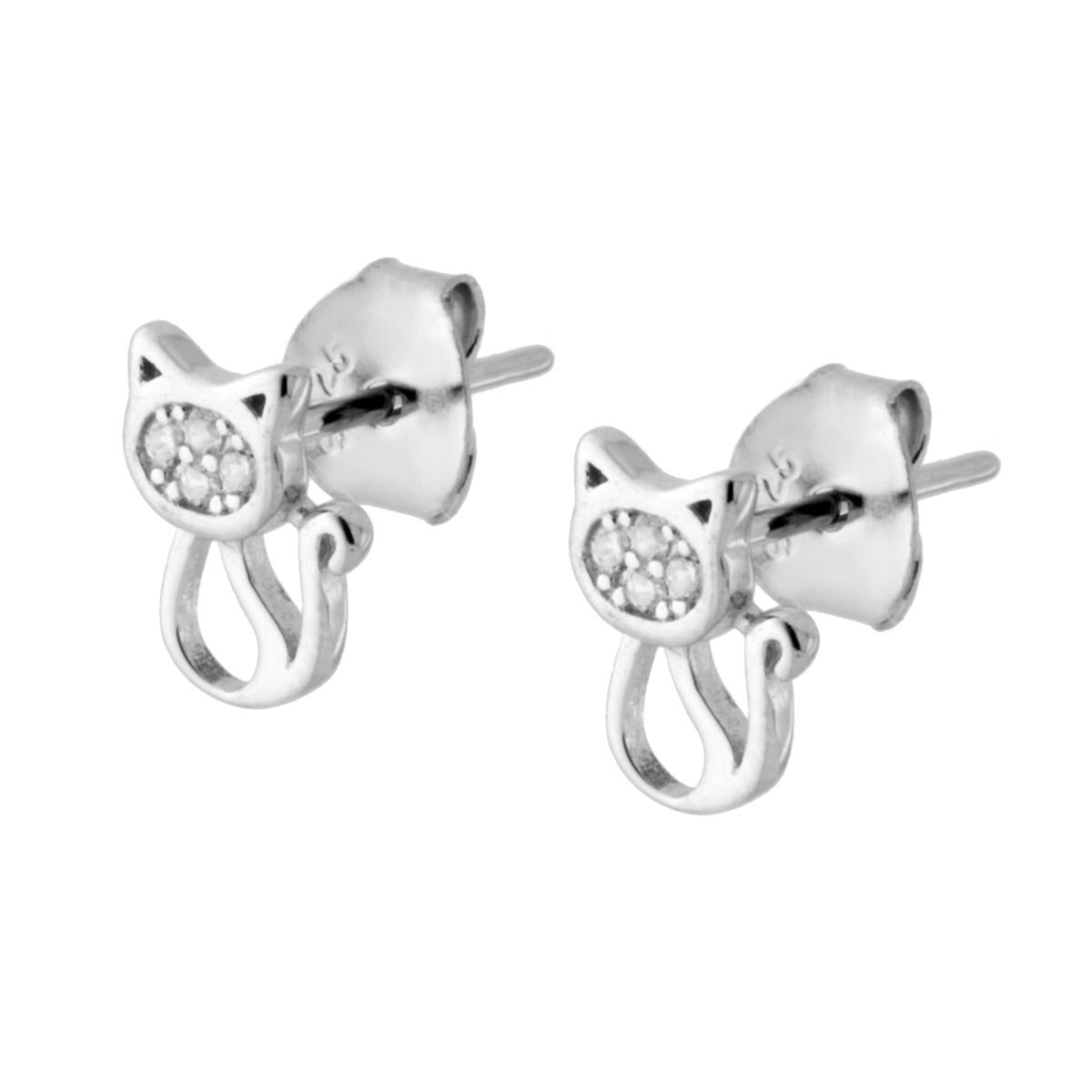 Orecchini Gatto con Zirconi Bianchi in ARGENTO 925 Galvanica Rodio
