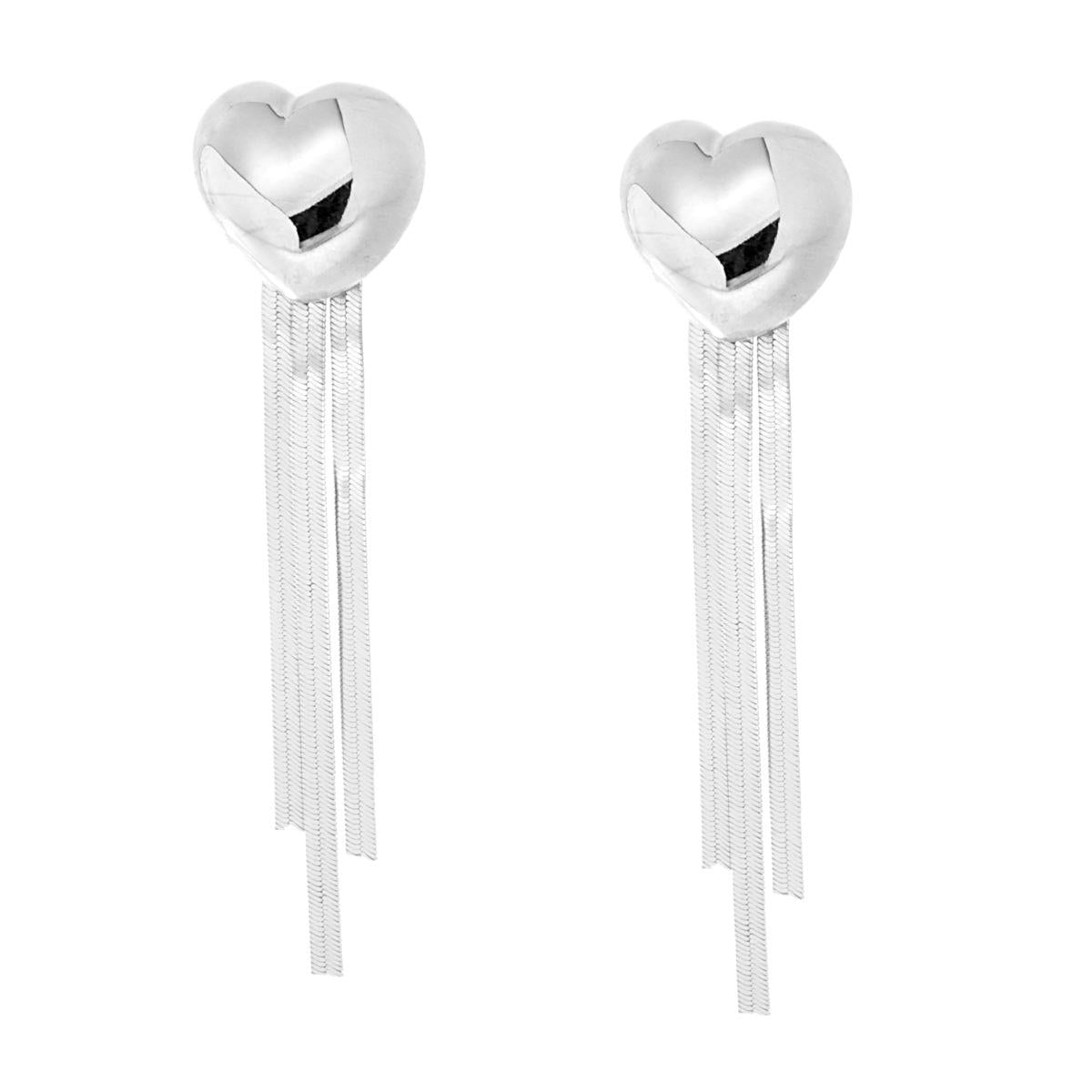 Orecchini Lunghi Cuore Bombato con Catene Magik pendenti in ARGENTO 925 Galvanica Rodio