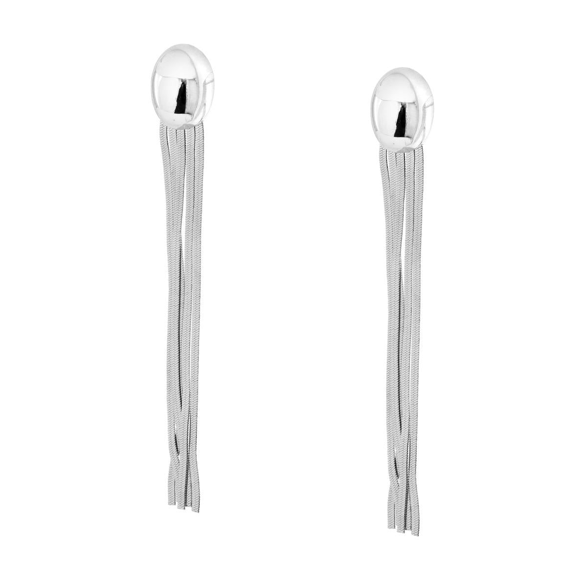 Orecchini con ovale bombato lucido al lobo con cinque fili di catena magik diamantata pendente.