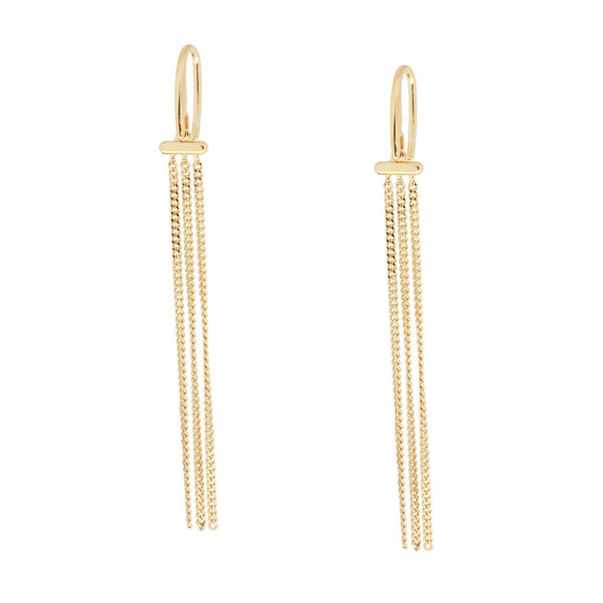 Orecchini lunghi con tre fili di catena grumetta diamantata pendenti.