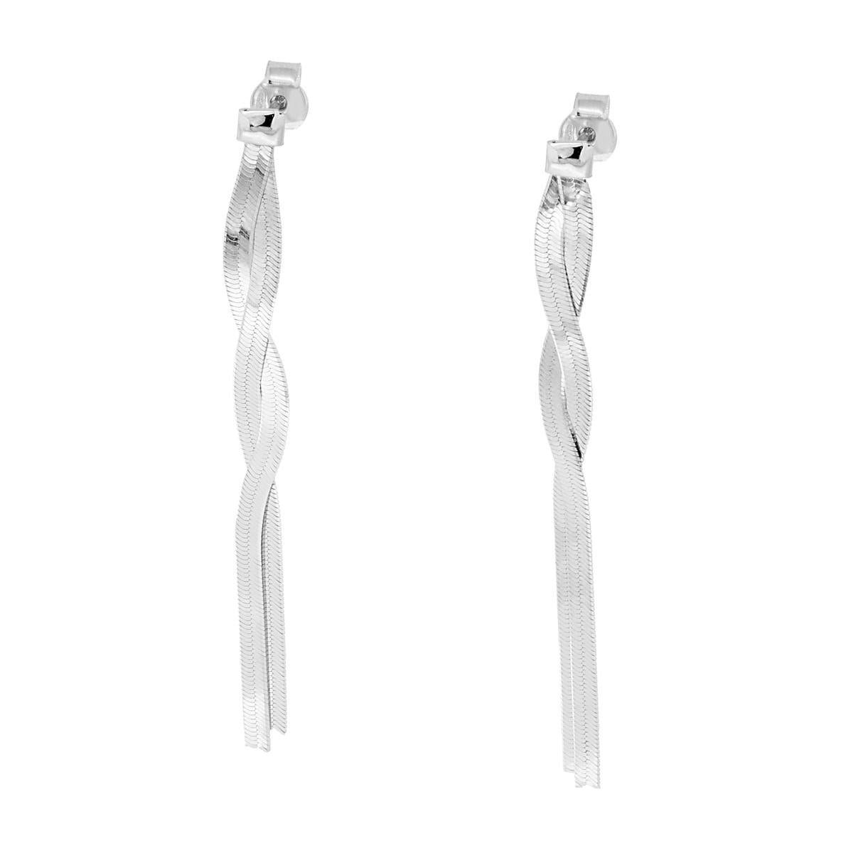 Orecchini Lunghi Treccia Catena Magik in ARGENTO 925 Galvanica Rodio