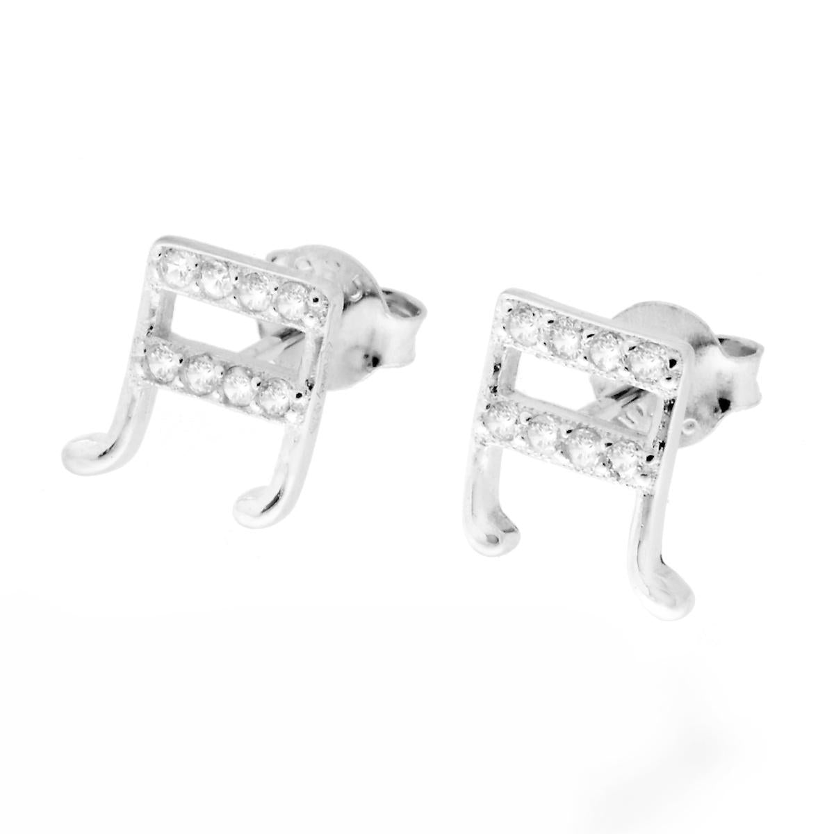 Orecchini Nota Musicale Biscroma con Zirconi in ARGENTO 925 Galvanica Rodio