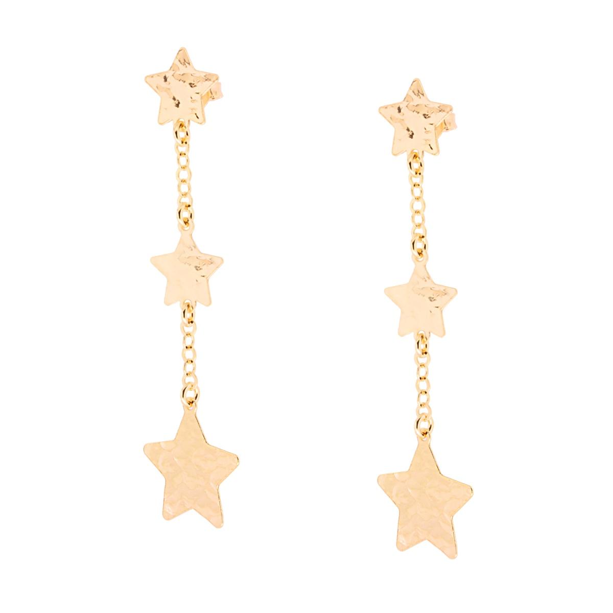 Orecchini pendenti con Catena Rolo e Stelle Piatte martellate in ARGENTO 925 Galvanica Oro