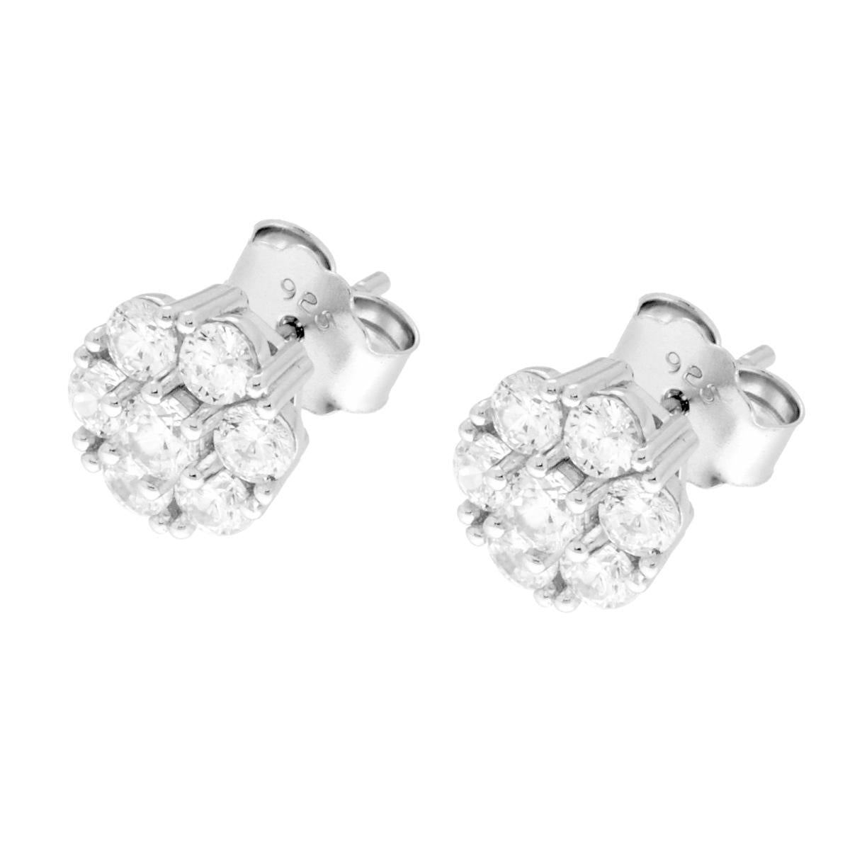 Orecchini Punto Luce Fiore con Cubic Zirconia Bianchi in ARGENTO 925 Galvanica Rodio