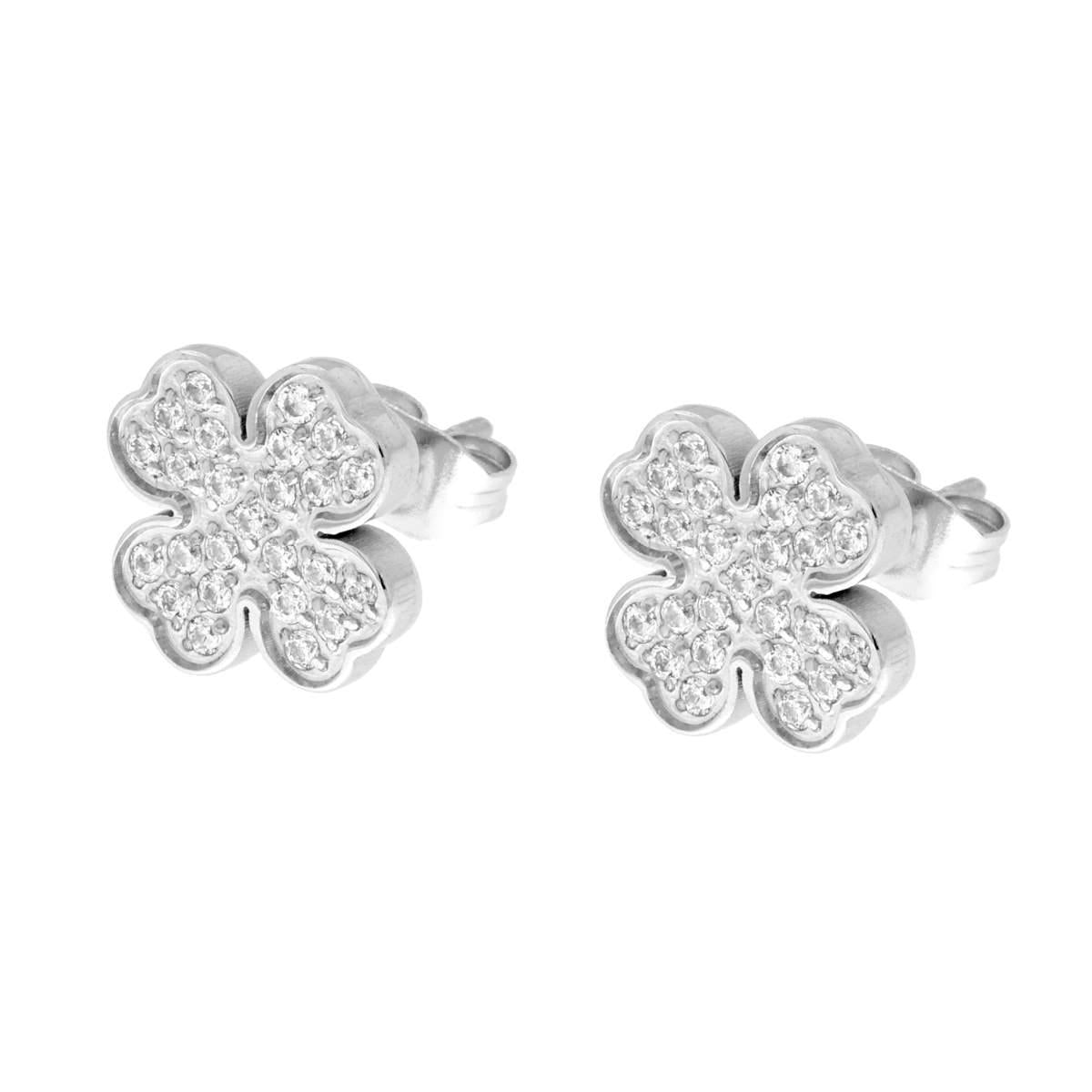 Orecchini Quadrifoglio con Crystal Bianchi in ACCIAIO
