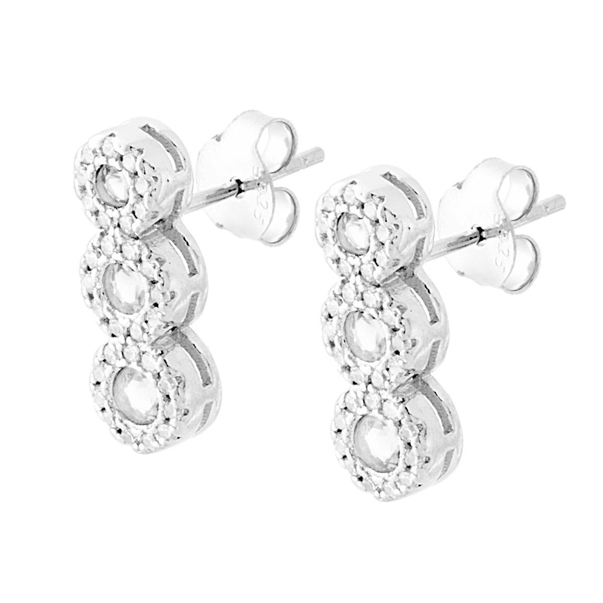 Orecchini trilogy con zirconi bianchi centrali con zirconi bianchi incastonati intorno.